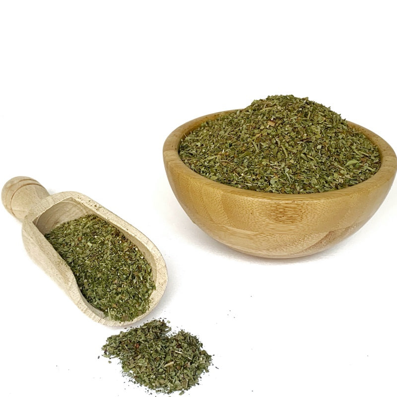 Carvi frutti contusi, erba cipollina in foglie, maggiorana in foglie, finocchio frutti, timo, prezzemolo foglie, basilico foglie, rosmarino foglie.